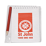A7 Notepad and half pencil in sealed bag for recording vital information.