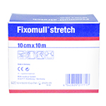 Fixomull® Stretch is a wide area adhesive tape, especially suitable for use on frequently mobile and highly contoured parts of the body. It is made from a white, stretchable, non-woven polyester dressing sheet coated with skin-friendly polyacrylate adhesive on quick-release backing paper. The adhesive ensures the dressing is firmly secured on all sides and cannot slip or become detached.